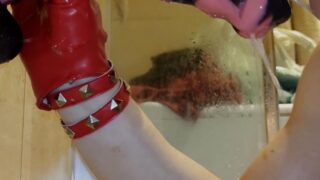 Mistress fucked his ass in the shower