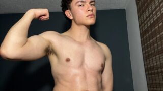 Ripped athlete tugging his cock